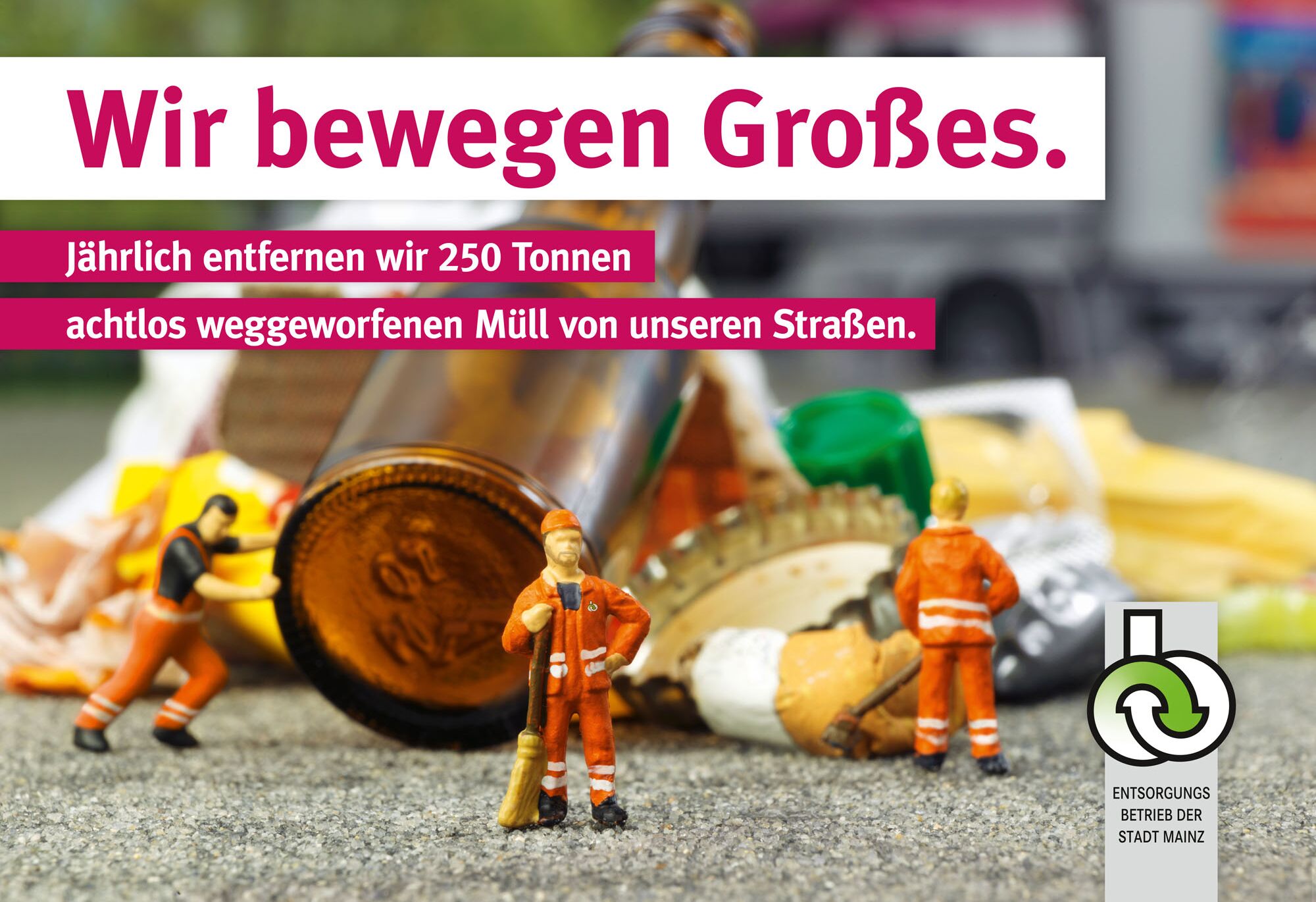 Die regional sehr erfolgreiche Kampagne ist bereits seit 2016 auf allen Müllfahrzeugen der Stadt Mainz zu sehen.