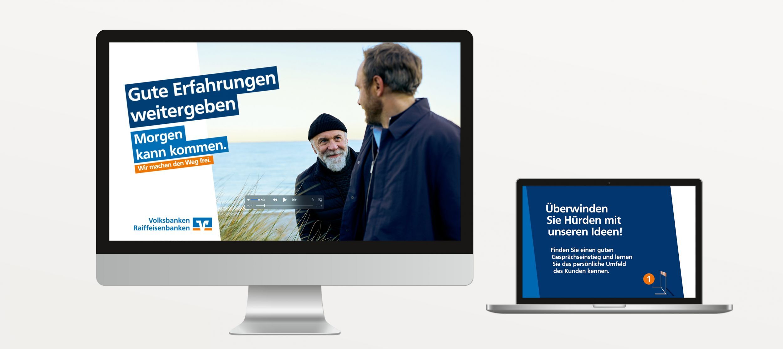 Im Rahmen unserer Kooperation mit dem Genossenschaftsverband entwickelten wir bereits 2018 ein Kommunikationskonzept im Bereich Empfehlungsmarketing für die Volksbanken Raiffeisenbanken. Realisiert wurden bisher diverse Kommunikationsmaßnahmen im Bereich Print und eine Filmproduktion.