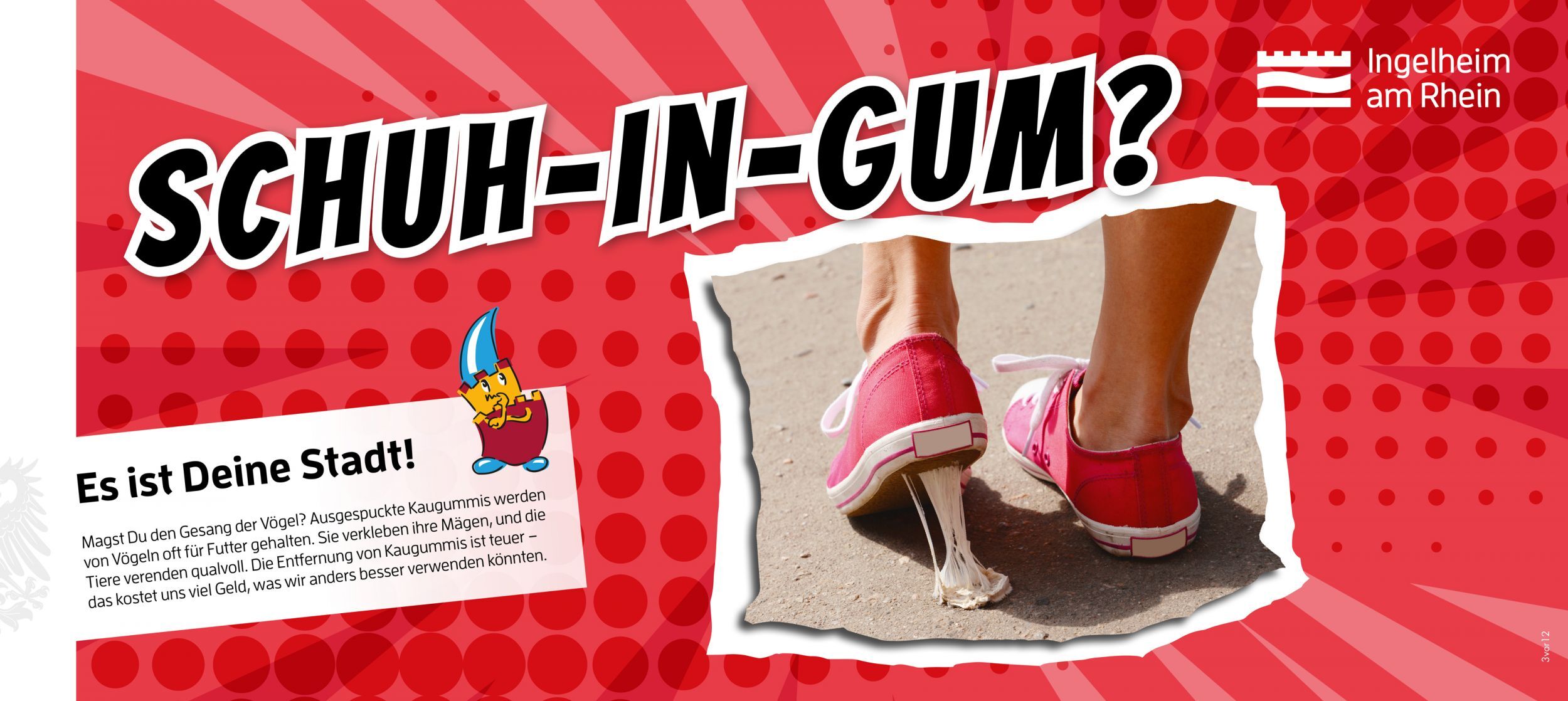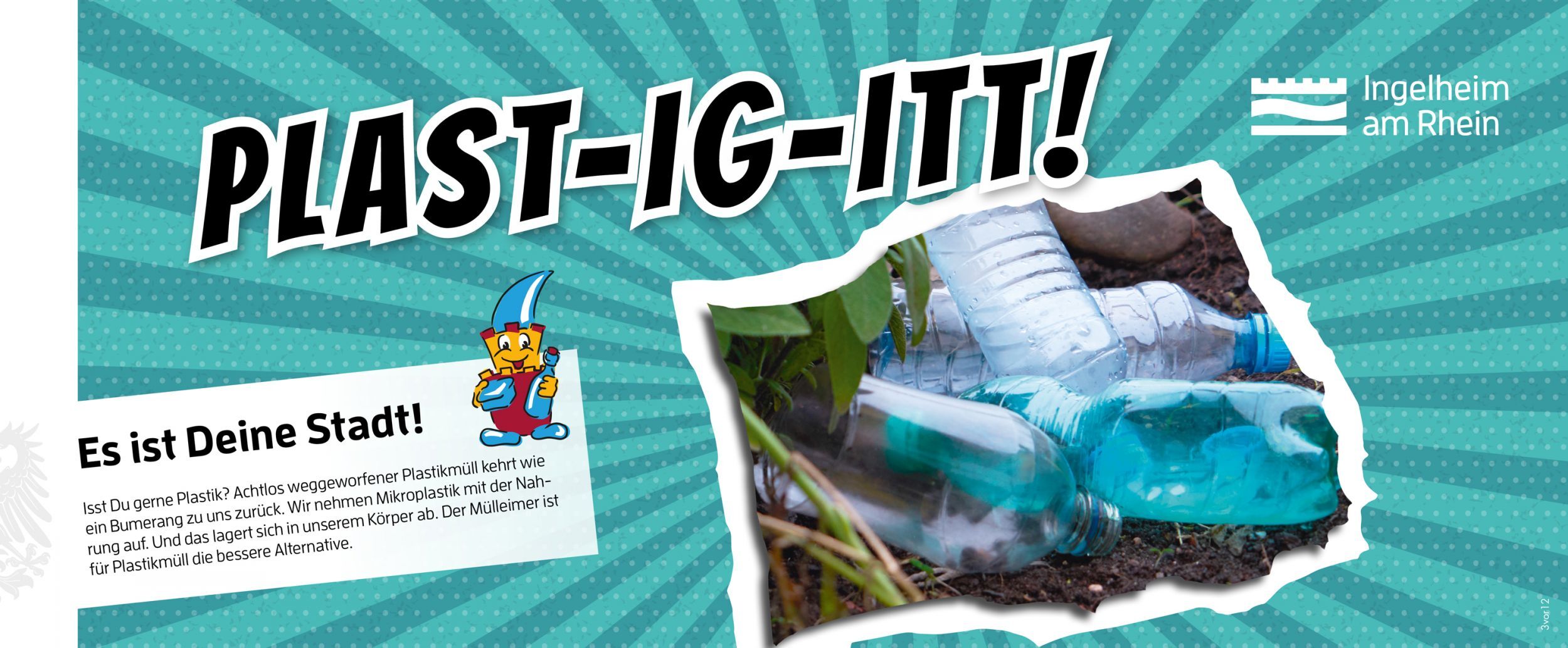 Seit Sommer 2020 sind die aufmerksamkeitsstarken Motive unübersehbar. Ingelheim appelliert mit der neuen Imagekampagne an seine Bürger und Bürgerinnen ohne Strenge und erhobenem Zeigefinger – dafür aber mit schlauen Wortspielen und auffallenden Motiven für die Vermeidung von Müll. Mitmachen ist dabei angesagt.